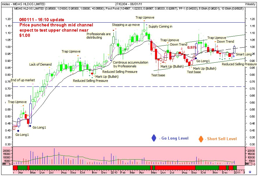 Yeah, hopefully Midas baby close above $1.01 (resistance no. 1) which was Nov 9, 2010 closing. Then, chiong some more to next resistance level, $1.07 (resistance no. 2) which was Sept 21, 2010 closing. Not sure if I got it correct this way because I am L license in Charting. Experts, please help out. Thanks alot. |