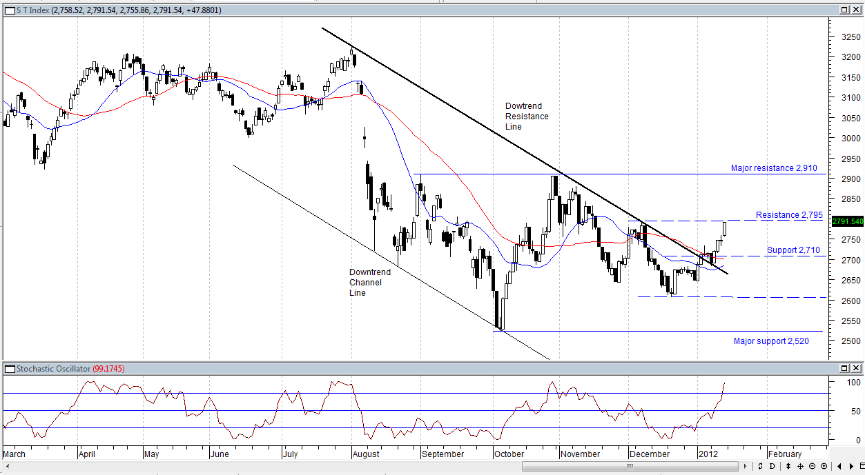 The STI closed above the key resistance at 2,910 by 6 points. Should we