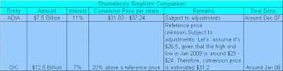 From the comparison table above, both ADIA and GIC would have the option to convert the Citigroup ( Citibank) share to a common stock at the price of around $31.83 - $37.24 ( around 2010 - 2011) and $31.2 respectively, given the assumptions and assuming no adjustments.